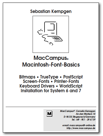 MacCampus® Macintosh-Font-BasicsThis is a 32-page brochure that was included in printed form with all our fonts during the time they were distributed on physical media (diskettes, later on CD). It was available in either German or English. They are being made available here for archival purposes.